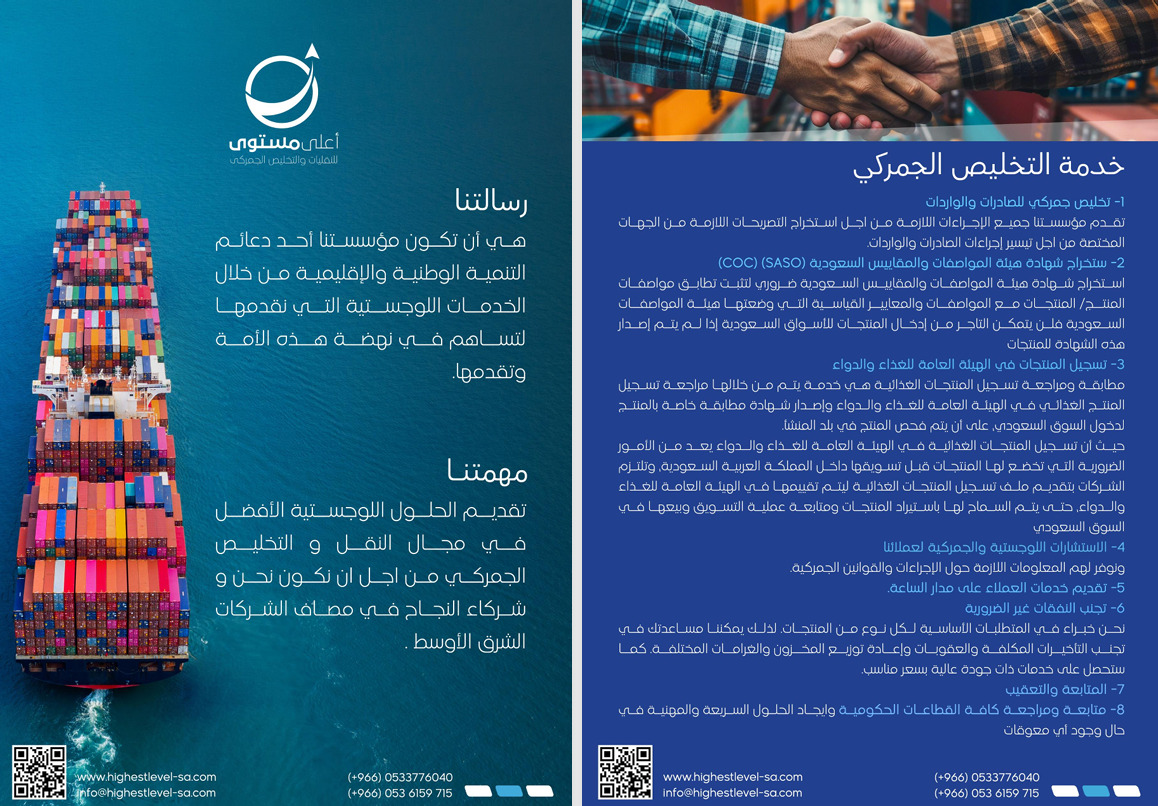 مؤسسة أعلى مستوى للنقليات والتخليص الجمركى
